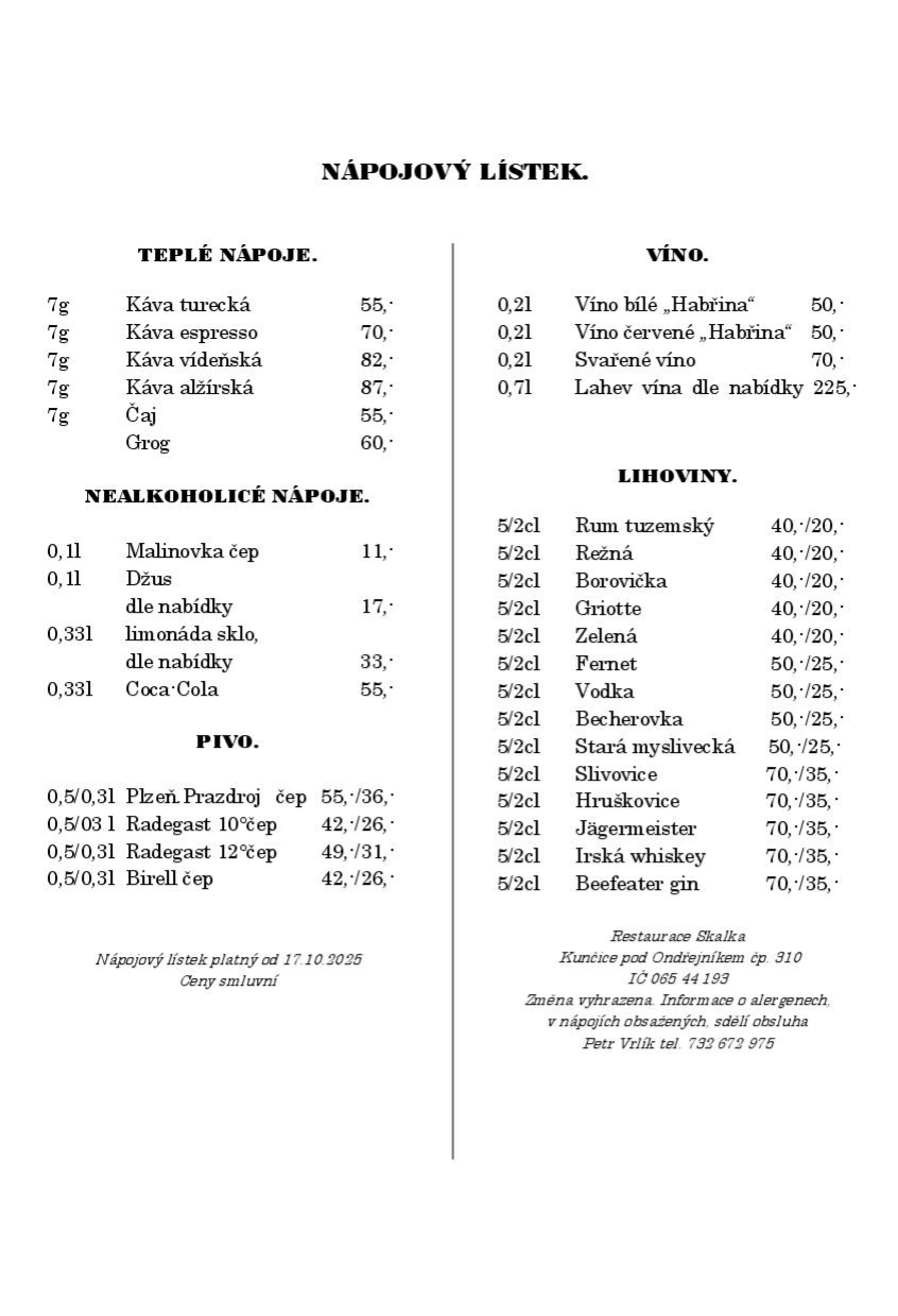 Jídelní a nápojový lístek